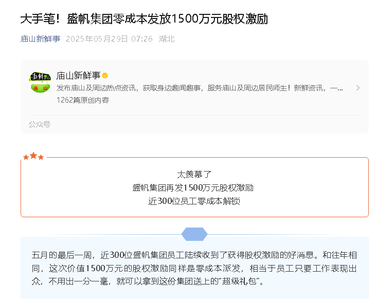 蒲月的起初7天,近300位盛帆团休职工陆续收到拿得债权奖励的好响动。和明年不异,契机结果1一千万元的债权奖励一个是零成···